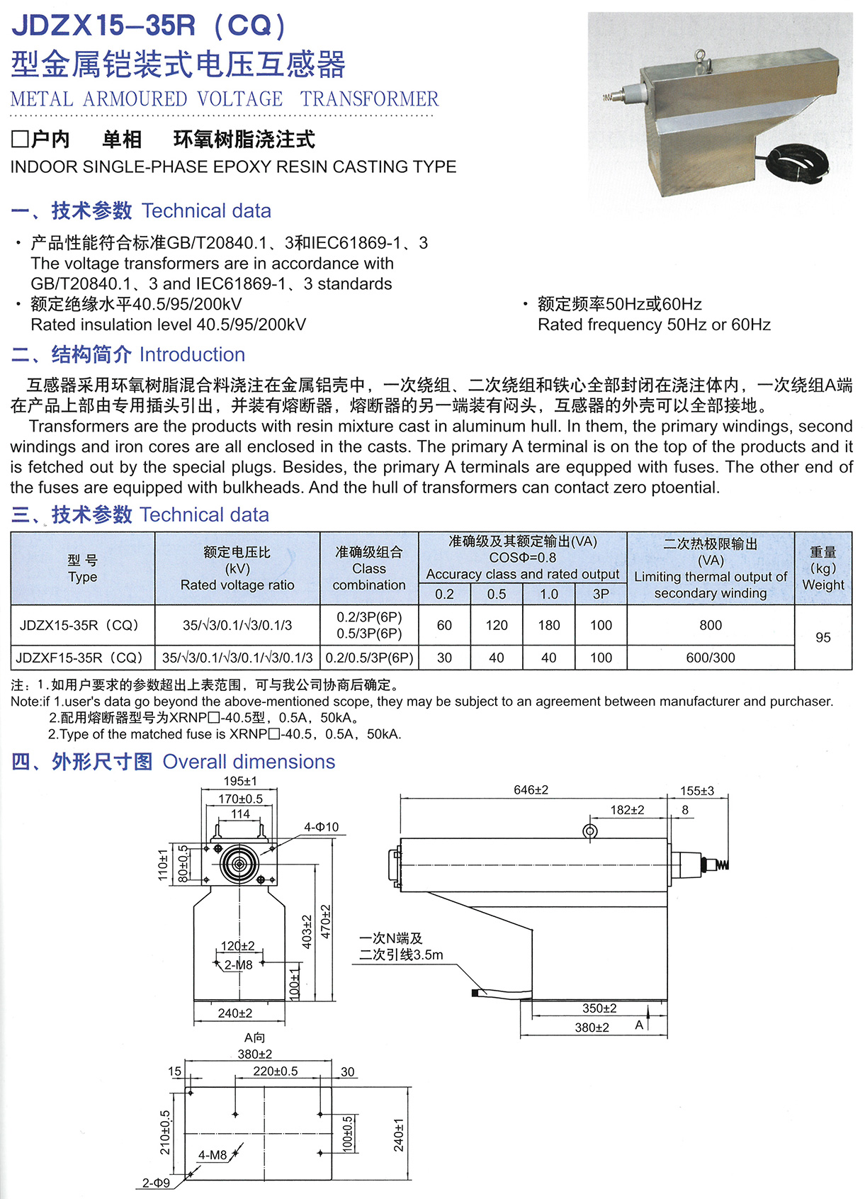 JDZX15-35R(CQ)型金屬鎧裝式電壓互感器